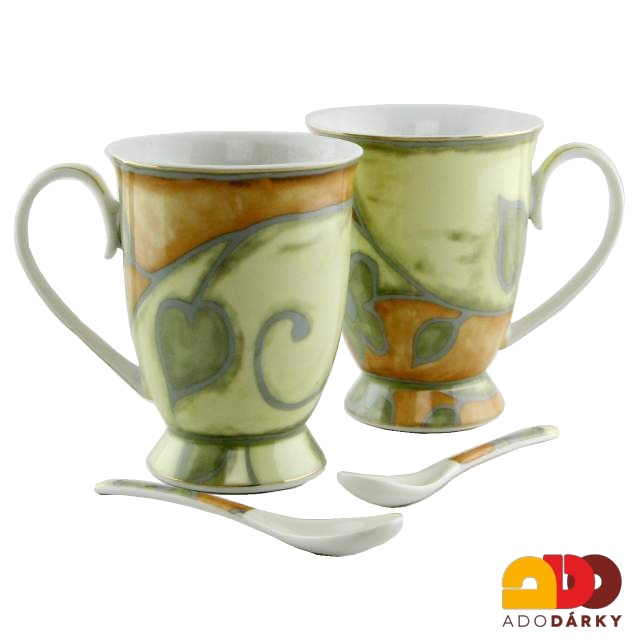 - Duo hrnky se lžičkami zdobené lístky