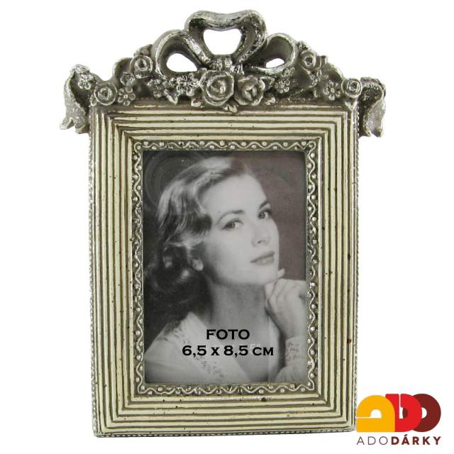 Fotorámeček z tvrzeného plastu, který zdařile imituje patinované dřevo, na fotku velikosti 6,5 x 8,5 cm. Rámeček lze opřít o přiloženou nožku.