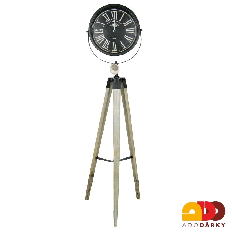 Výklopné kovové hodiny na vysoké dřevěné trojnožce jsou tím pravým zpestřením každého interiéru. Ve svém industriálním stylu, kopírujícím staré drážní hodiny vám přinesou originální zážitek při každém pohledu. Vyzdobte si vlastní byt lifestylovými designovými hodinami.