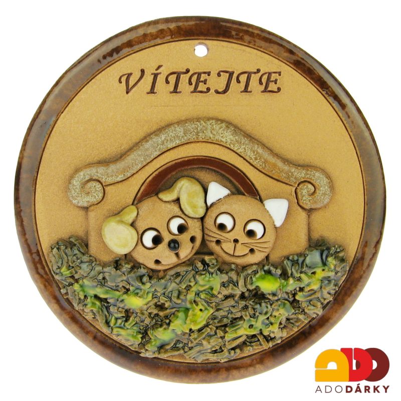Kolečko Pes a Kočka "Vítejte" s hnědým lemem 14 cmIhned k expedici 1 ks310 Kč/ ks256 Kč bez DPH