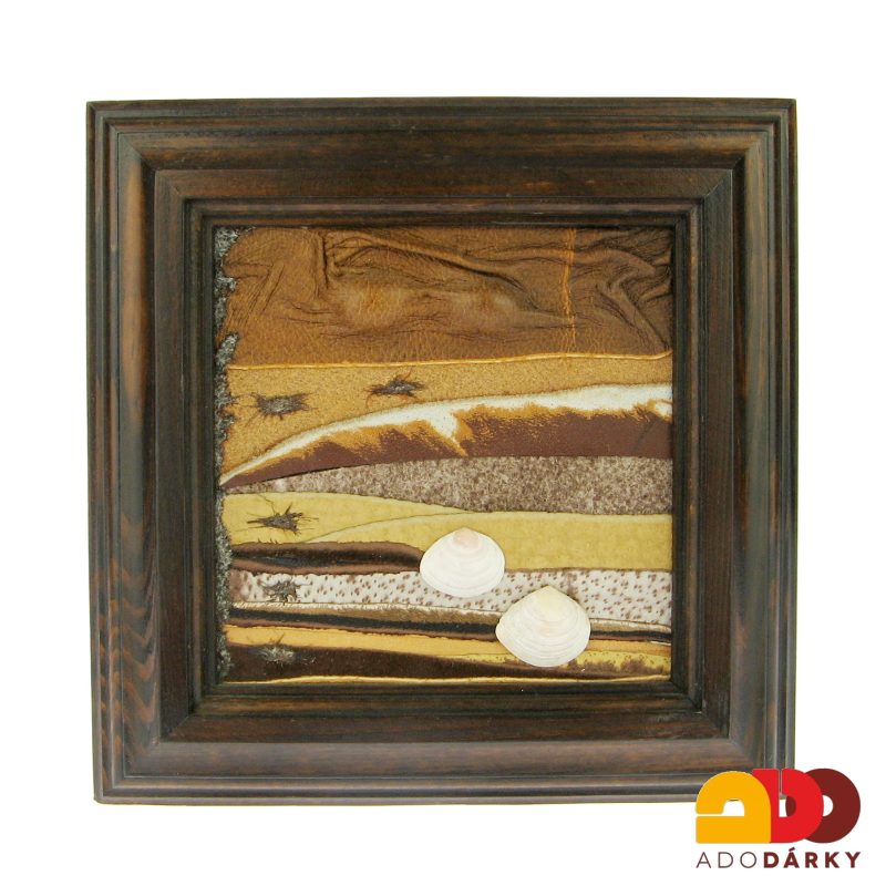 - Kožený obrázek v dřevěném rámu 16 cm - var. 4