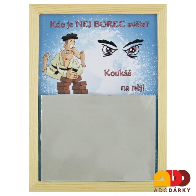 Vtipný obrázek zarámovaný v dřevěném rámu a opatřený očkem ke snadnému pověšení na zeď. Každý obrázek se věnuje jednomu z aktuálních témat a převádí ho do vtipné roviny. Obrázky jsou vhodné jako dárky s nadsázkou pro lidi oplývající smyslem pro humor.