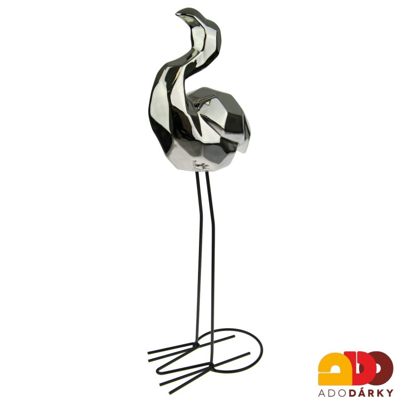 - Porcelánový plameňák, kovové nohy, stříbrná barva 55 cm