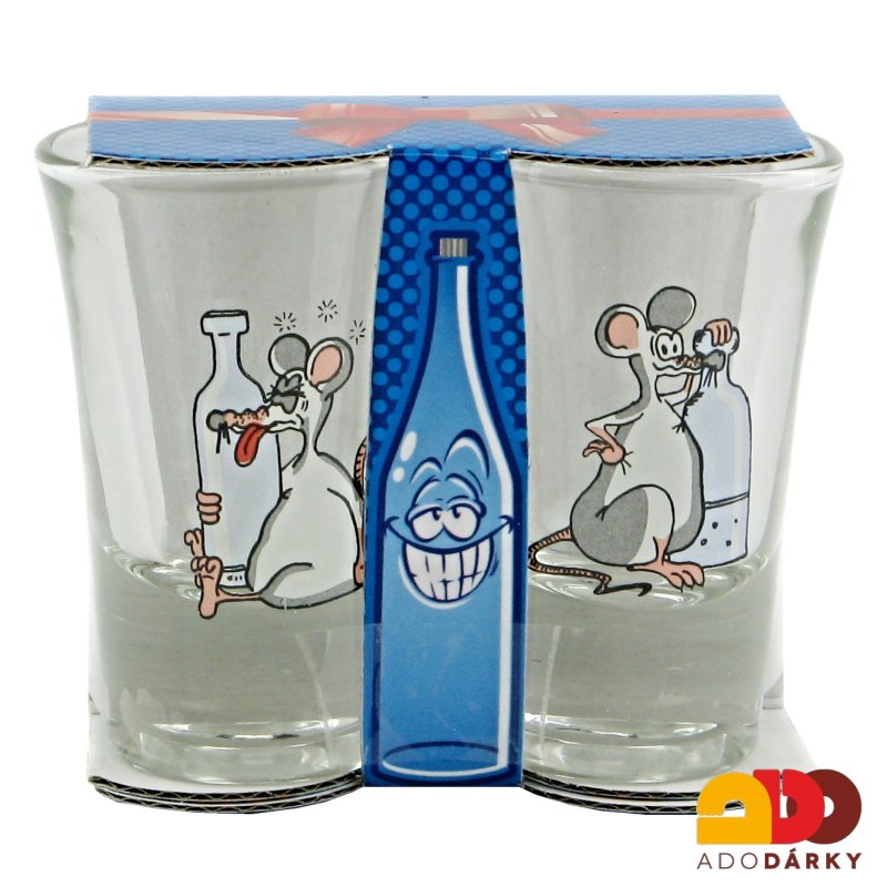 Sada 2 štamprlí neboli odlivek na slivovici, popřípadě jiný destilát je zdobena obrázkem Myši. Jedná se o skvělý dárek nejen pro muže. Obě štamprle jsou dárkově zabaleny.