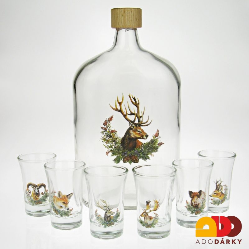 Sada 6 odlivek s láhví "Jelen" 1 l