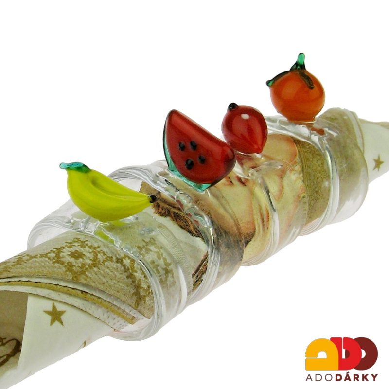 Sada čtyř skleněných kroužků na ubrousky Ovoce - varianta II.Ihned k expedici 1 ks420 Kč/ ks347 Kč bez DPH