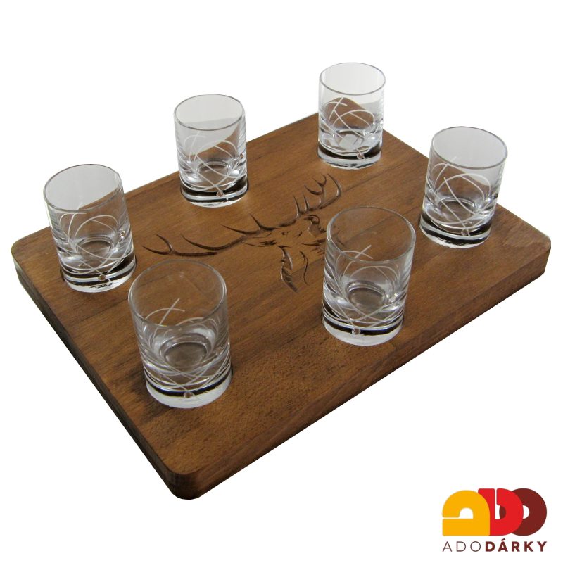 Netradiční sada šesti odlivek na dřevěném prkýnku s vybroušeným jelenem. Sklenice Swarovski jsou vyrobeny z křišťálového skla, které svou kvalitou patří mezi špičku v mezinárodním srovnání. Celá sada je zabalena v dárkové krabici.