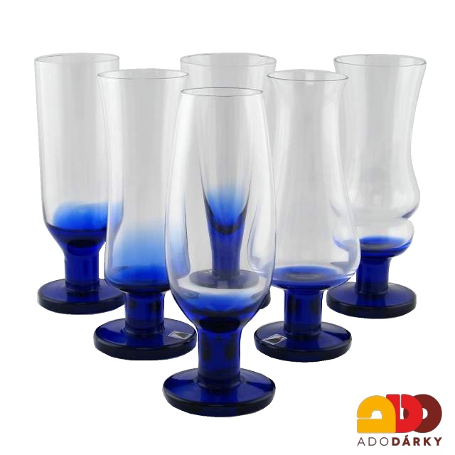 Vhodným dárkem ke svatbě, různým výročím, či třeba pro významné obchodní partnery jsou nádherné sklenice z křišťálového skla. Kupříkladu tato originální sada šesti fléten na šampaňské. Skleničky jsou ručně vyrobeny z tradičního českého křišťálu s obsahem 24% PbO a kromě modré stopky mají různé tvary. Dárková krabice je samozřejmostí.