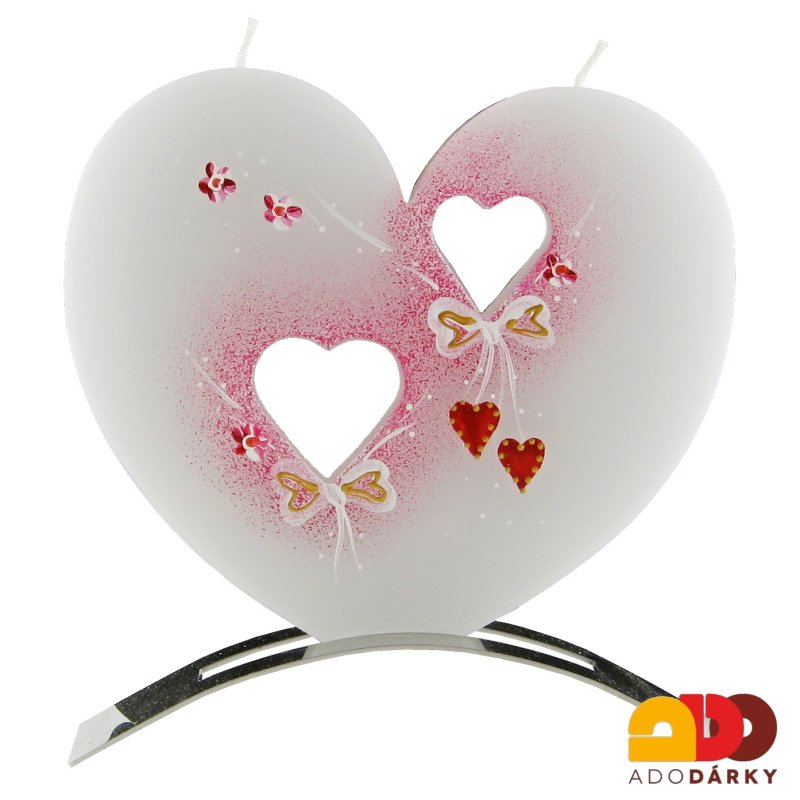 - Svíčka 2 knoty svatební, srdce + kovový stojánek