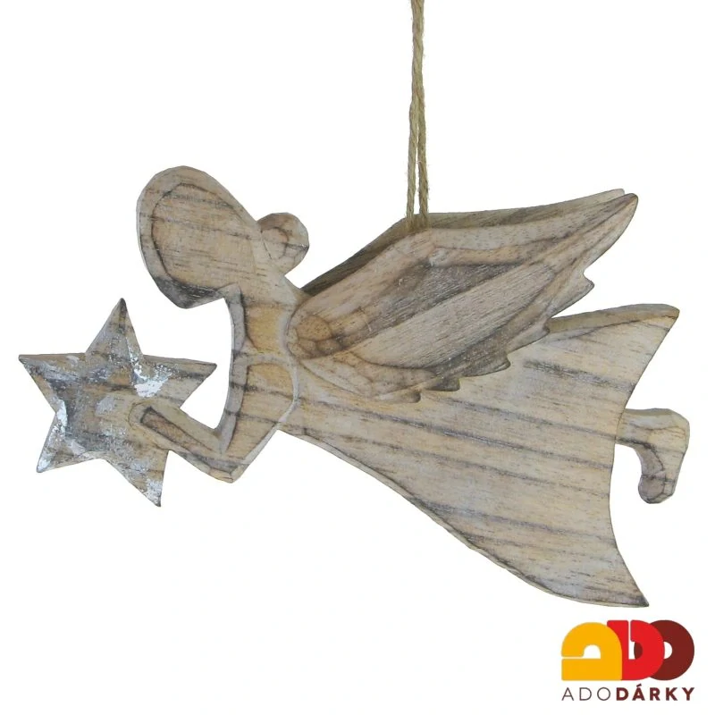 Anděl dřevěný s hvězdou - závěs 20 cmIhned k expedici 4 ks240 Kč/ ks198 Kč bez DPH