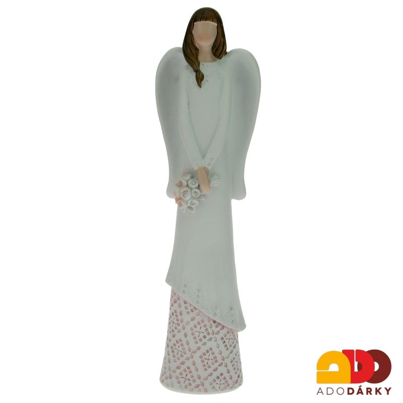 Anděl v růžové krajce s kyticí v rukách 25 cmIhned k expedici 1 ks460 Kč/ ks380 Kč bez DPH