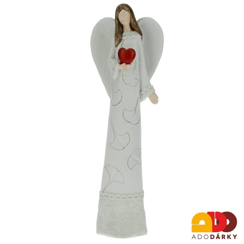 - Anděl v šatech s lístky se srdcem v ruce 25 cm