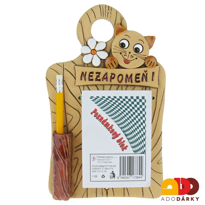 Roztomilý keramický držáček na poznámkový blok s tužkou. Na držáčku je poté vymodelována malá hlava kočky. Od teďka už nikdy na nic nezapomenete. Díky otvoru v horní části není problém s připevněním například ke zdi.