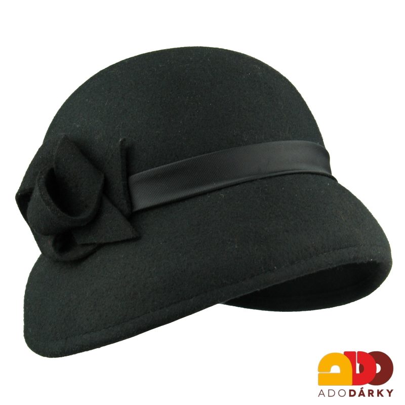 - Černý plstěný klobouk se stuhou a ozdobnou mašlí
