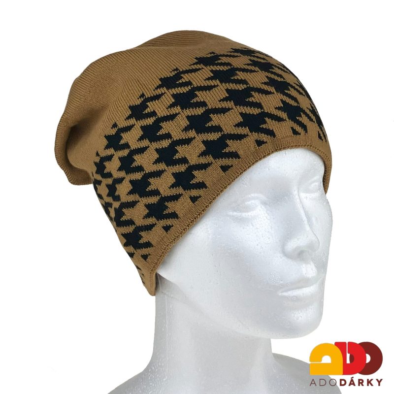 - Dámská zimní čepice světle hnědá s pepito vzorem