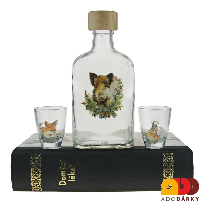 Sada dvou odlivek s obrázkem mysliveckého motivu a jedné láhve s divočákem je dárkově luxusně zabalena jako kniha s nápisem Domácí lékař. Nápaditý dárek především pro muže k jakémukoliv výročí nebo narozeninám. Už je na každém člověku, kam si ji schová nebo uloží, jestli do knihovny mezi knihy nebo někam do dílny...