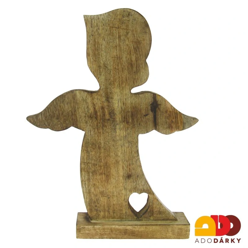 Socha anděla vyrobená z jednoho kusu dřeva s malým otvorem ve tvaru srdce. Dřevo pro tohoto anděla je ze stromu s názvem mango - jedná se o dřevinu pocházející z jižní a jihovýchodní Asie. Vyzdobte si interiér nebo exteriér jedním z dlouhé řady dřevěných andělů. Dřevěný anděl = blíž Bohu a přírodě.