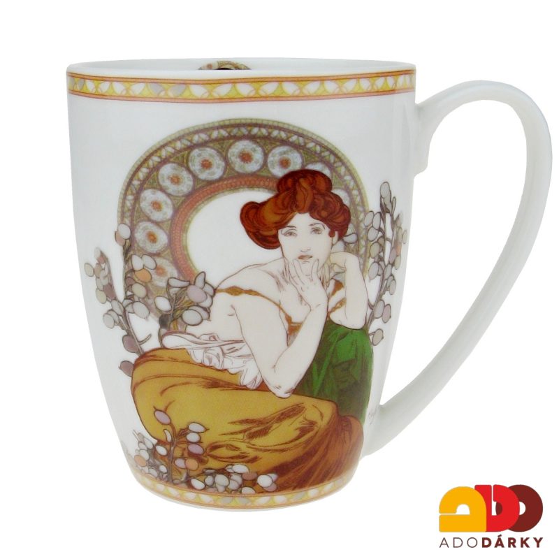 Vysoký porcelánový hrnek v ozdobné krabičce zdobený replikou obrazu světoznámého malíře Alfonse Muchy - Smaragd bílý. Vychutnejte si ranní čaj nebo odpolední kávu ze stylového hrnečku a nalaďte se tak na celý zbytek dne.