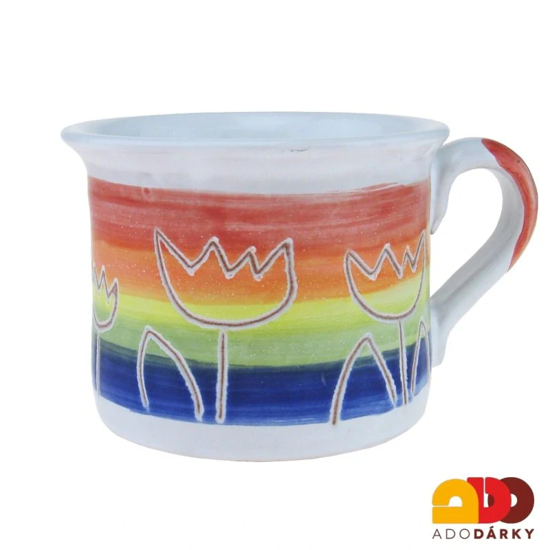 Tradiční rovný keramický hrneček, zdobený glazurou v několika barvách s vyrytými tulipány. Udělejte radost sobě nebo svým blízkým a pořiďte tento retro hrneček v různých barvách a velikostech. Záleží jen na Vašem vkusu.