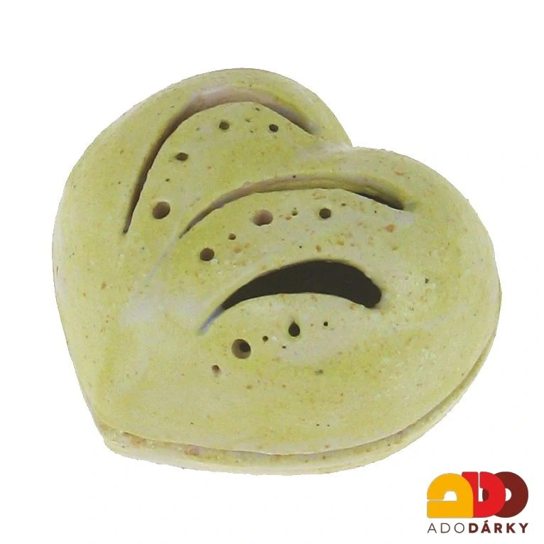 Keramická dózička ve tvaru srdce je glazovaná veselou barvou a je může být vystavena jen tak, případně i použita jako skrýš pro nějaké drobnosti.