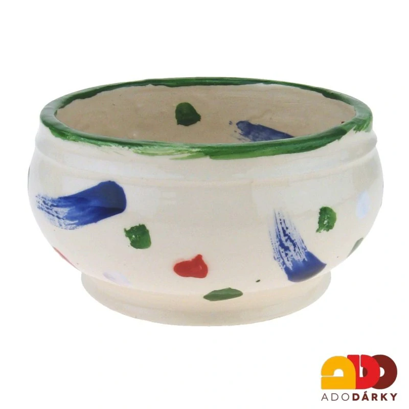 Keramická miska se zeleným lemem a malbou je originálním doplňkem, který je možno využít jako solitér ne dekoraci, tak i jako kus k běžnému požívání