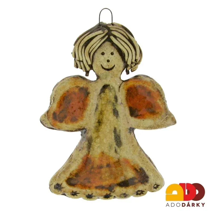 Veselá keramická dekorace v podobě andílka s háčkem na zavěšení. Vyzdobte si interiér jedním z velké spousty andílků.