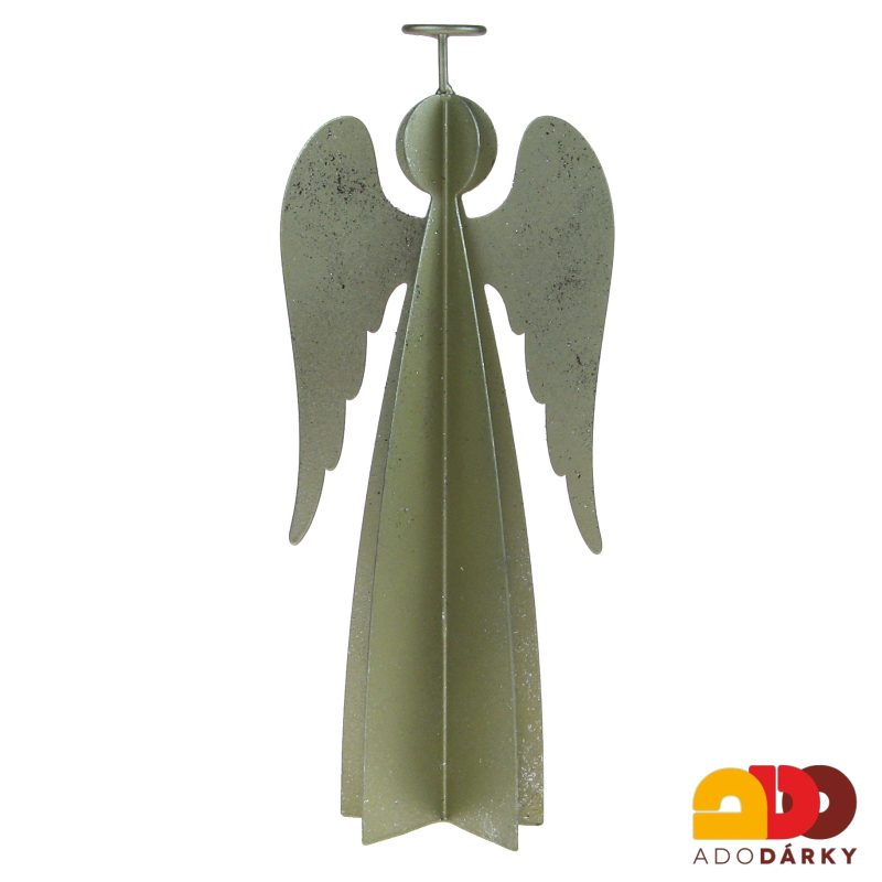 - Kovový anděl stříbrno-zlatý z více plátů 25 cm