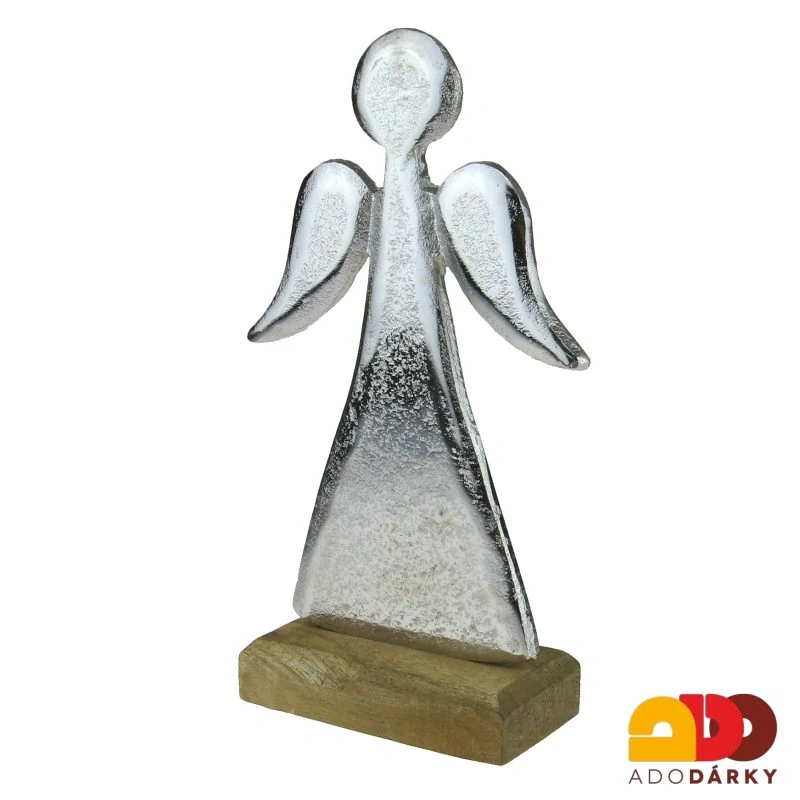 - Kovový anděl stříbrný na podstavci 22,5 cm