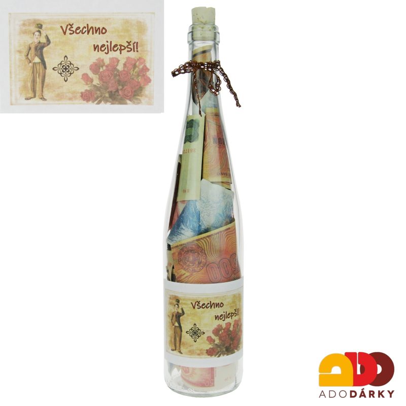 Láhev plná peněz "Všechno nejlepší" var. 2Ihned k expedici 4 ks185 Kč/ ks153 Kč bez DPH