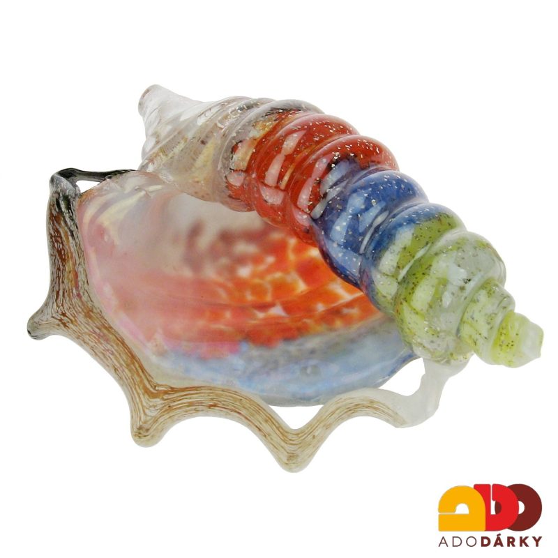Ručně dělaná skleněná lastura vhodná k vystavení nebo k použití jako stolní těžítko zároveň s odkladným místem na prupisky sponky a další nezbytne kancelářské maličkosti. Mořská dekorace, je výsledkem práce české sklářské školy, která je špičkou v oboru dekorativní a designové výroby skleněných produktů, v tomto konkrétním případě v podobě podvodního světa.