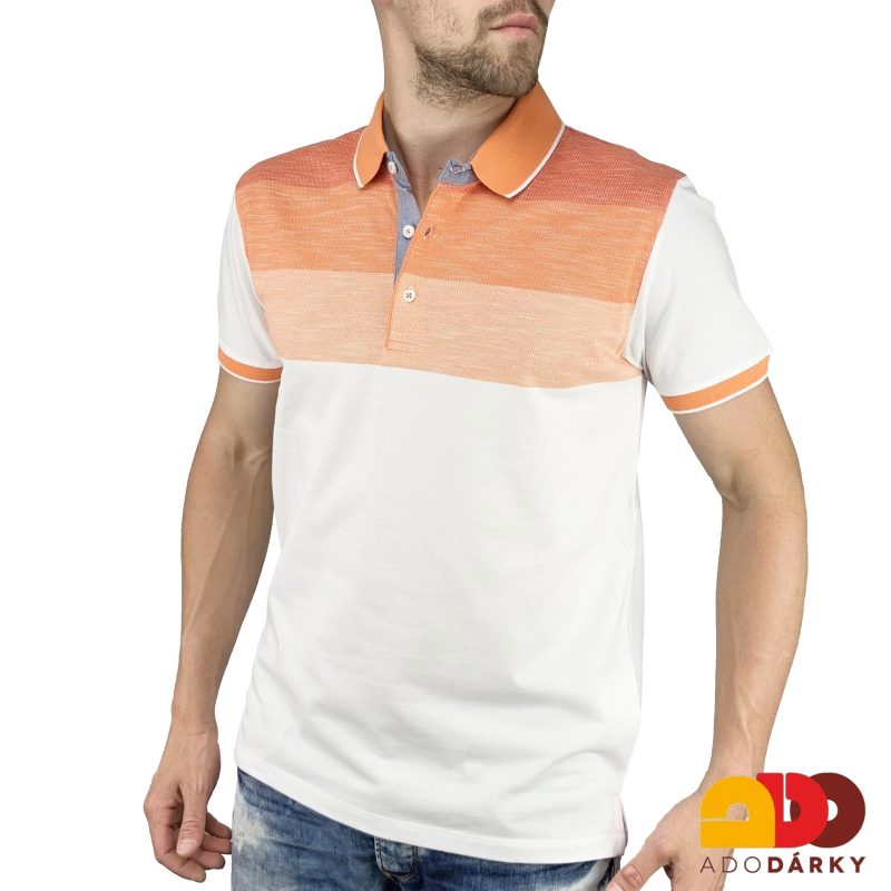 - Pánská polokošile krátký rukáv oranžovo - bílé pruhy