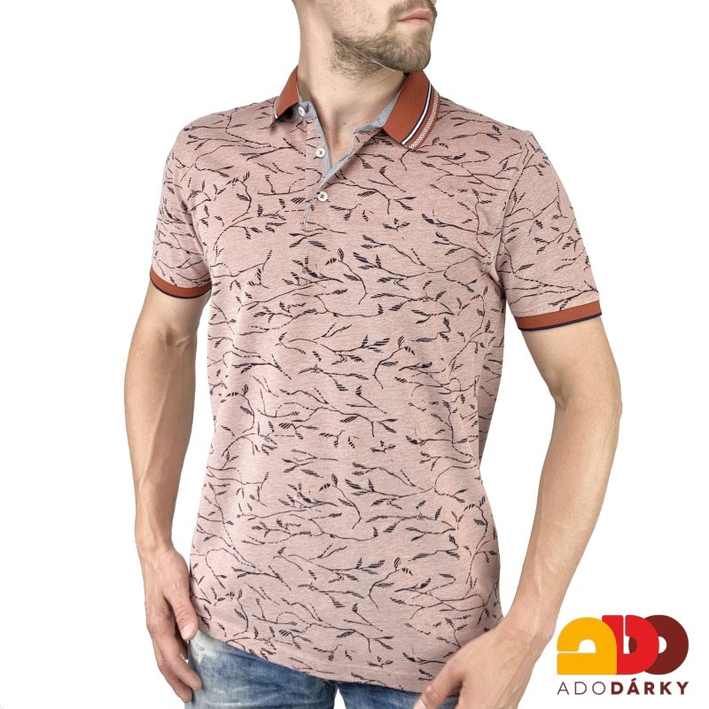 - Pánská polokošile krátký rukáv růžovo - hnědá s větvičkami