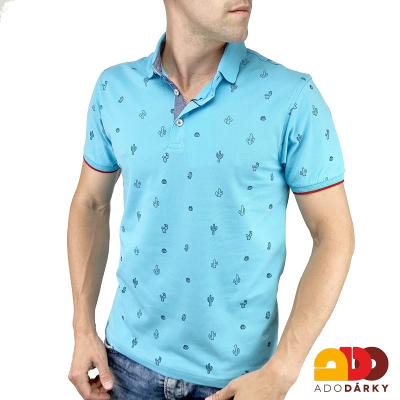 - Pánská polokošile krátký rukáv světle modré s kaktusy