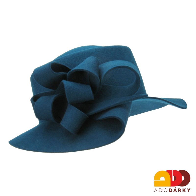 Petrolejový plstěný klobouk s mašlíIhned k expedici 1 ks1 460 Kč/ ks1 207 Kč bez DPH