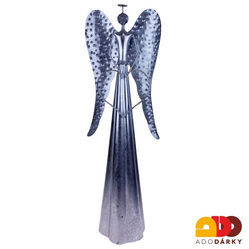 Plechový anděl stříbrný se svítícím LED srdcem 43 cmIhned k expedici 1 ks940 Kč/ ks777 Kč bez DPH