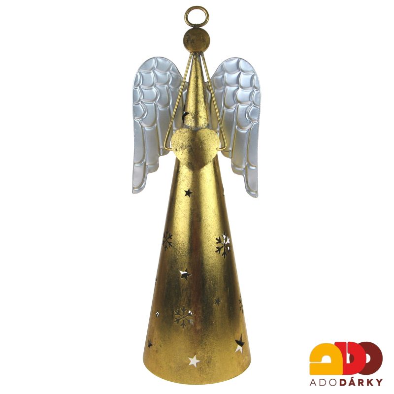 - Plechový svícen anděl zlatý se stříbrnými křídly 45 cm