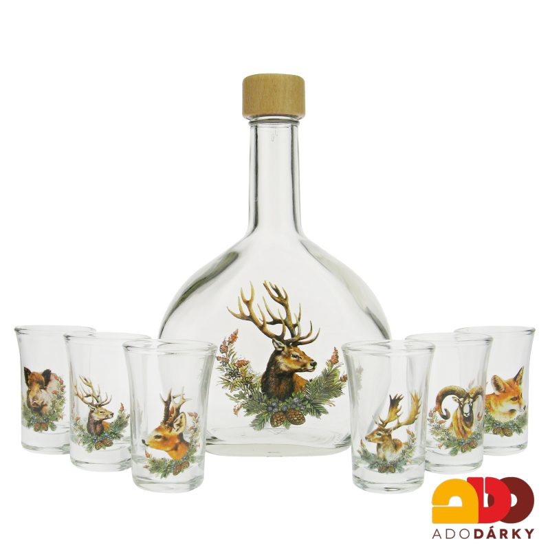 Sada 6 odlivek společně s láhví v dárkové krabici je dekorována loveckým motivem. Odlivky s láhví jsou dárkově zabaleny v papírovoplastové krabici. Jedná se o skvělý dárek pro kohokoliv, vhodný k jakémukoliv výročí, protože balení je skutečně luxusní.