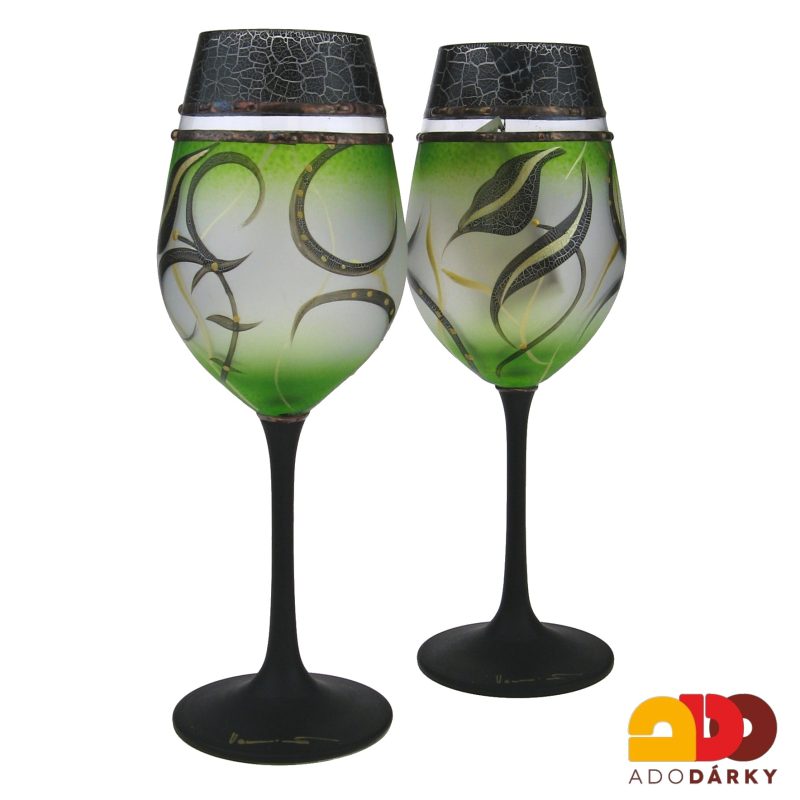 Sada dvou ručně zdobených číší černo zelené barvy 250 ml