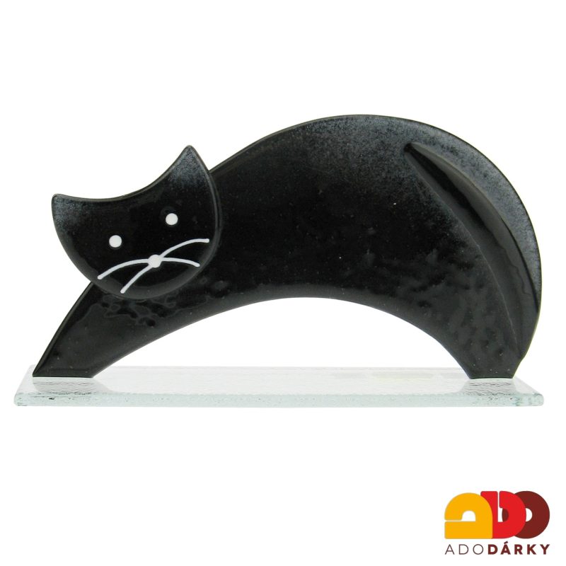 Skleněná kočka protahující se černá 20,5 cmIhned k expedici 1 ks385 Kč/ ks318 Kč bez DPH