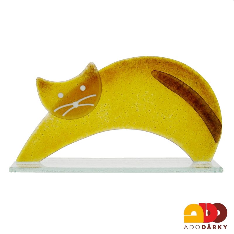 Skleněná figurka protahující se rezavé kočky na průhledném podstavci. Čisté linie a zaoblené hrany skleněných dekorací podporují vzdušnost a světlenost každého interiéru. Vybírejte z různých zvířátek, velikostí a barev.