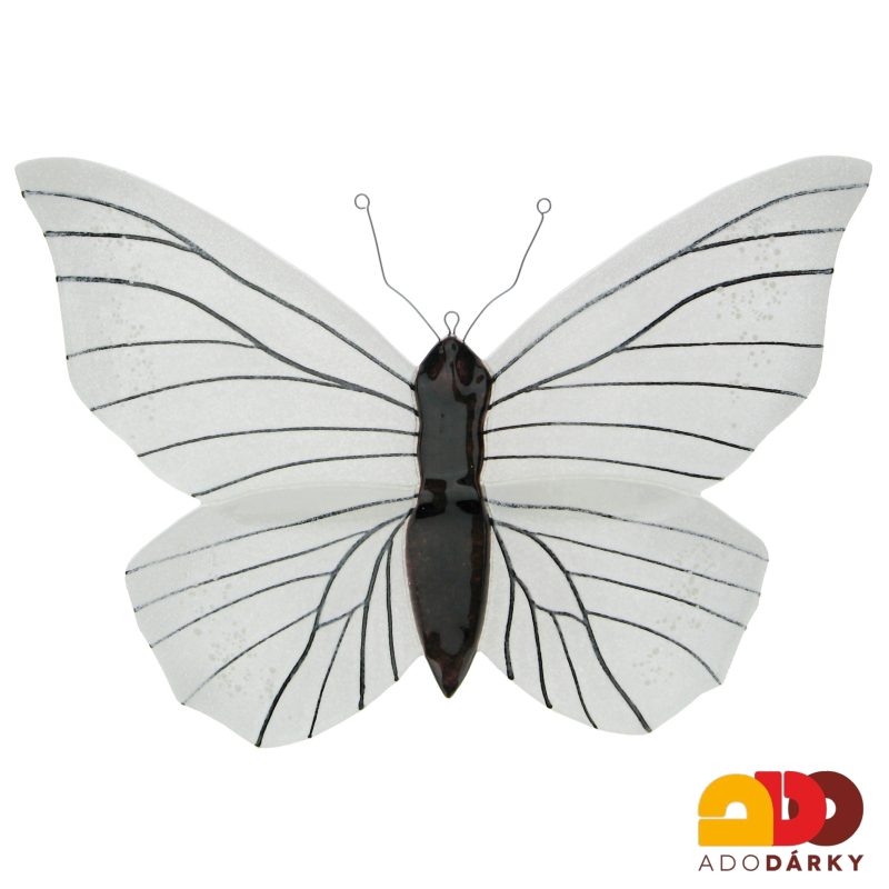 Skleněný motýl bílý 35 cm