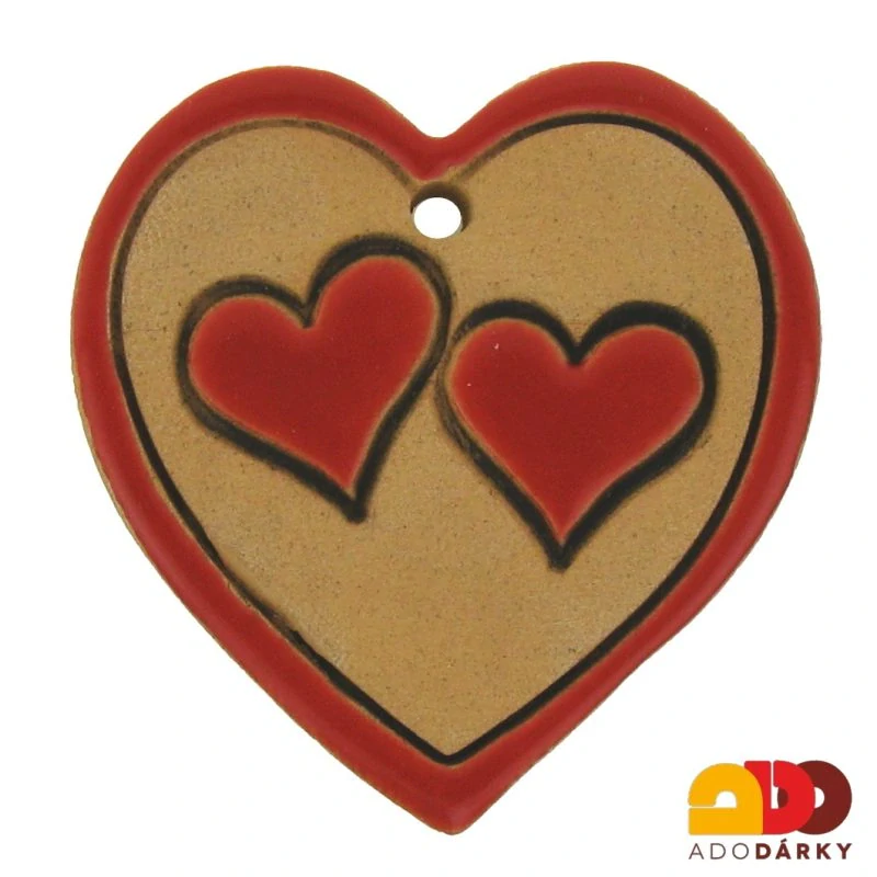 Malé keramické srdíčko obtáhlé červenou glazorou, které je ještě ozobeno dvěma velkými srdíčky. Udělejte si radost touto roztomilou miniaturou, která Vám přinese spoustu štěstí. Rozhodně se nejedná o dárek jen pro zamilované.