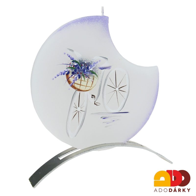 Svíčka 1 knot jízdní kolo s květy fialová + kovový stojánekSkladem 1 ks395 Kč/ ks326 Kč bez DPH