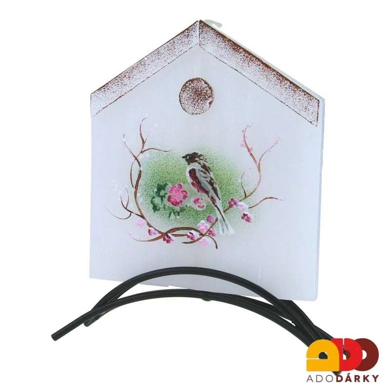 - Svíčka domeček "Ptáček s květy" + kovový stojánek