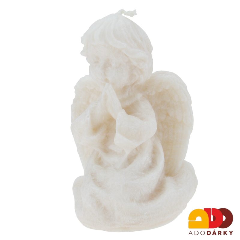 Ručně vyrobená svíce ve tvaru klečícího andílka z přírodního vosku, který po zatuhnutí vytváří krystalickou strukturu. Díky tomu je každá svíce originálním dílem, jelikož na různých místech nestejně odráží dopadající světlo.