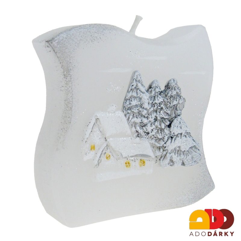 - Svíčka Zimní krajina stříbrná 7,5 cm