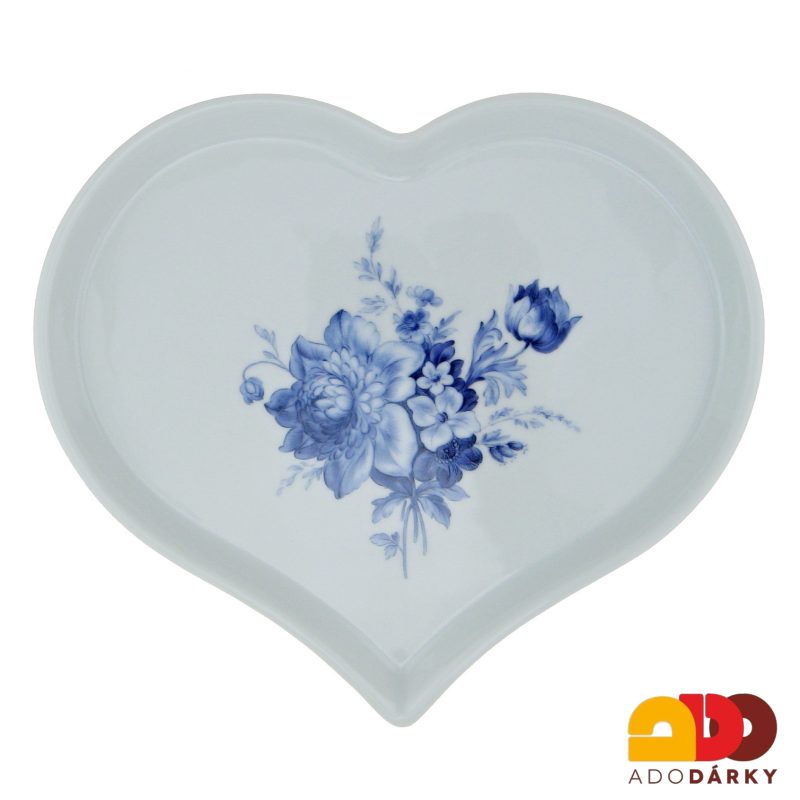 Porcelánový servírovací talíř nebo chcete-li tác ve tvaru srdce zdobený modrými květy. jedná se o perfektní kousek z českého porcelánu, který jednak dobře vypadá a zároveň je i funkční.